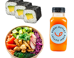 Акция: пн-чт, 10-16. Поке с курицей (300 гр), классчика Авокад (8 шт), морс облепиха 250 мл.
