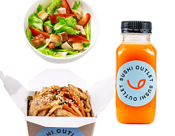 Акция: пн-чт, 10:00-16:00. Курица в соусе терияки с пшеничной лапшой (330 гр), салат Цезарь ( 105 гр...