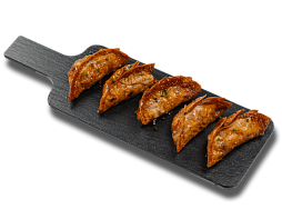Маринованная куриная грудка, кинза, соус Терияки, тесто, маринованные грибы шиитаке.