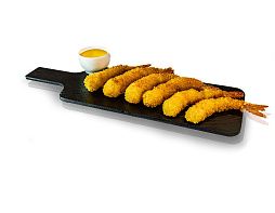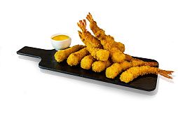 Отборные Тигровые креветки, обжаренные в панировке до хрустящей золотистой корочки. Подаются с пряным соусом Спайс...